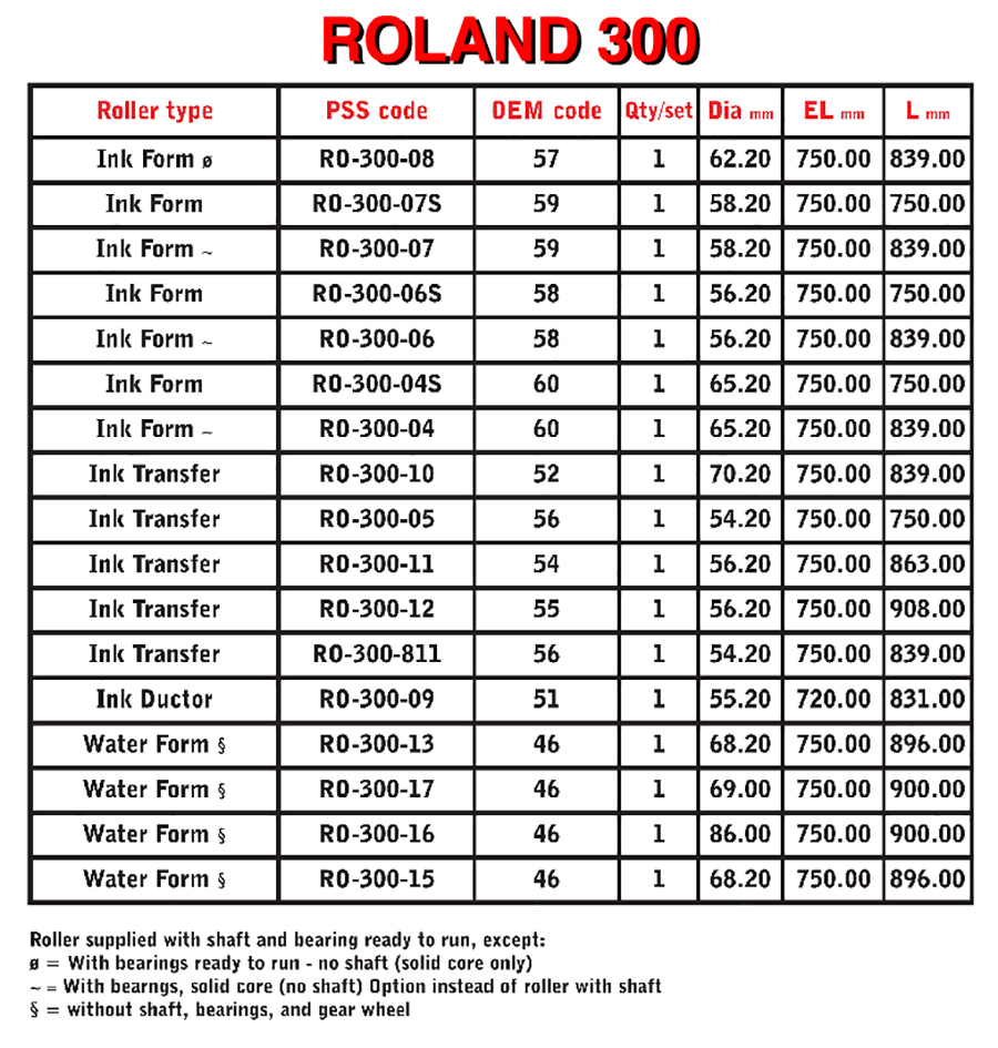 At Printers Superstore we also stock rollers for the following Roland Machines :