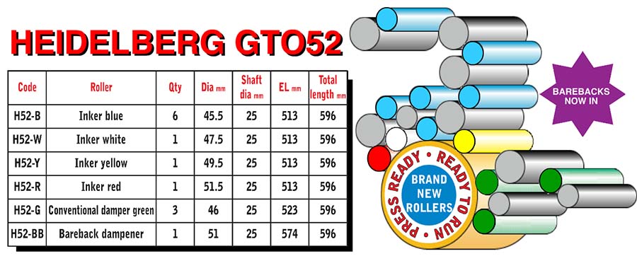 At Printers Superstore we also stock rollers for the following Heidelberg Machines :