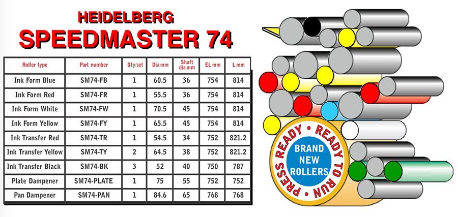 At Printers Superstore we also stock rollers for the following Heidelberg Machines :