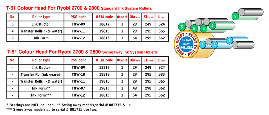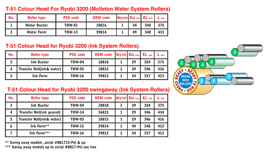 At Printers Superstore we stock rollers for the following Townsend Machines